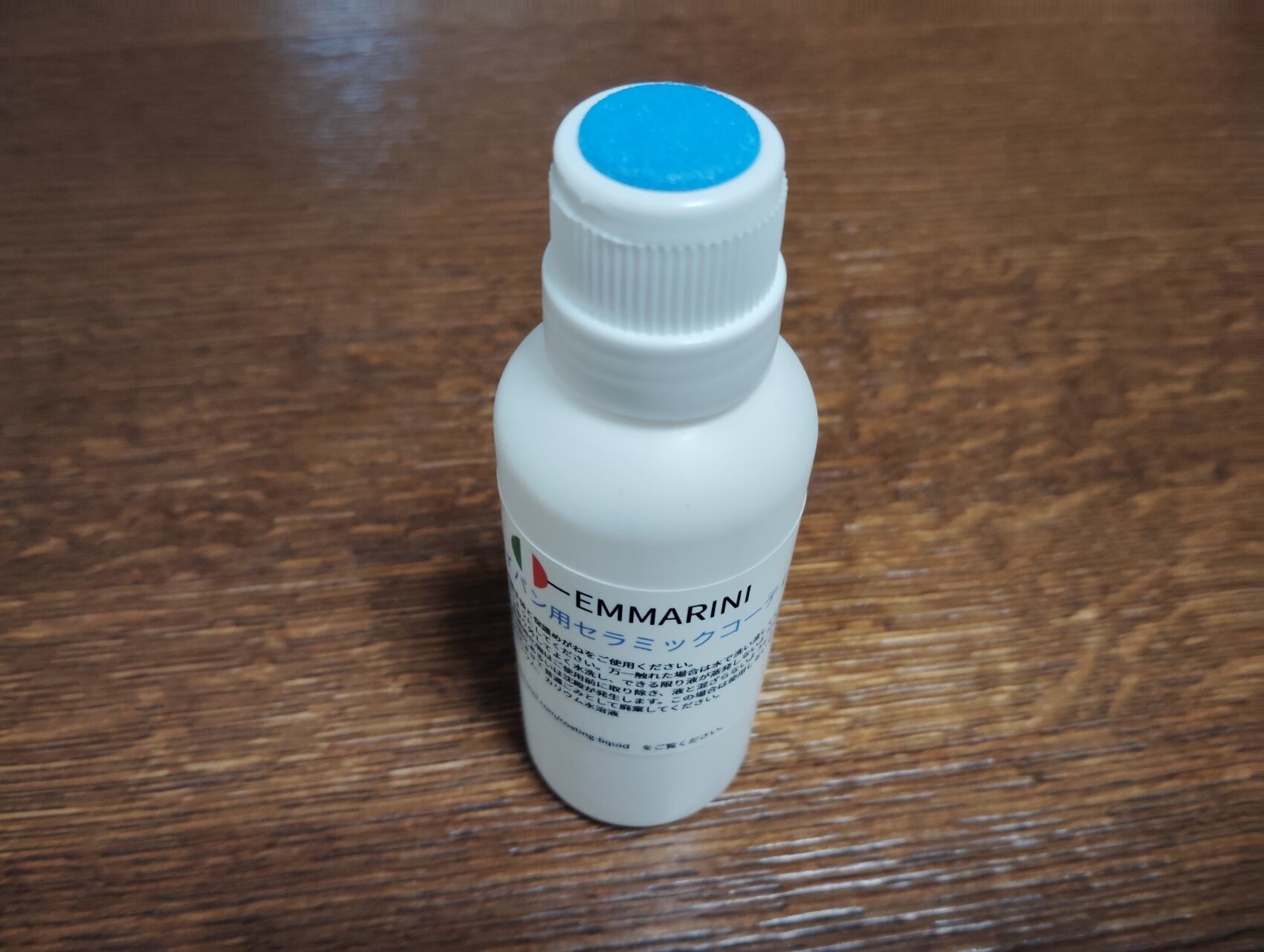 キット内容は、セラミックコーティング液の入ったスポンジヘッドボトル(チャック付き袋入り)と保護メガネ、保護手袋です。これらはご使用時に必ずご着用ください。スポンジヘッドは取り外し可能で、液体だけを取り出すことも可能です。